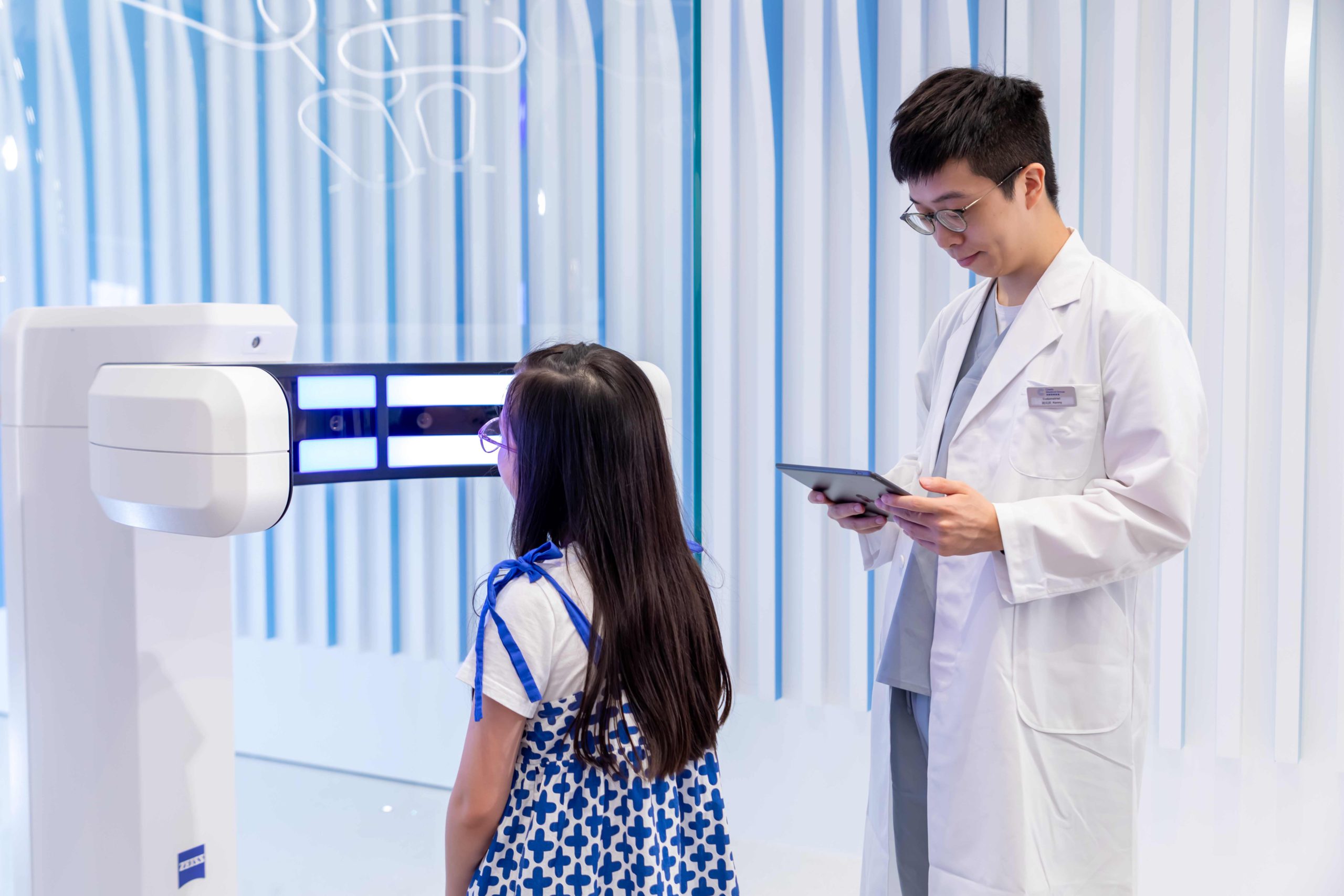 清晰近視防控中心與 Zeiss蔡司組成策略性聯盟,於診所開設全港首家蔡司近視管控工作室,提供的各類型精密鏡片和視力解決方案,讓孩子們選擇最適合自己的方式進行矯正。同時,引入蔡司Visufit 1000數碼中心定位儀,透過9個鏡頭同時拍攝顧客180°全景圖,毋須人手量度焦距和驗配瞳孔位置,可以更精準為小朋友驗配個人化控制近視眼鏡。