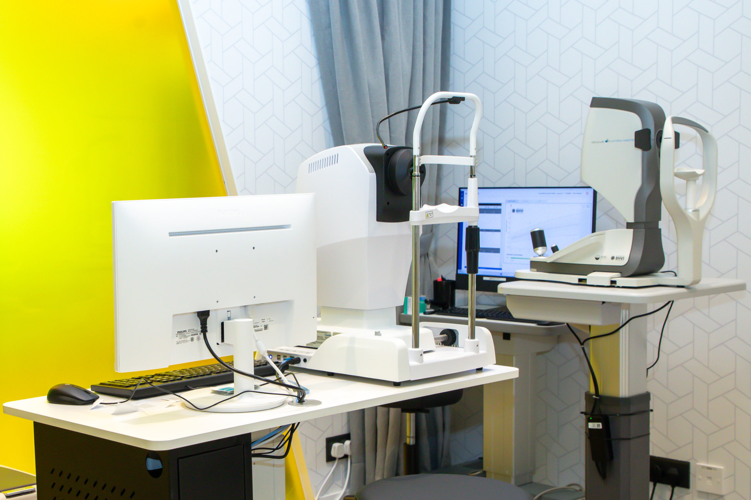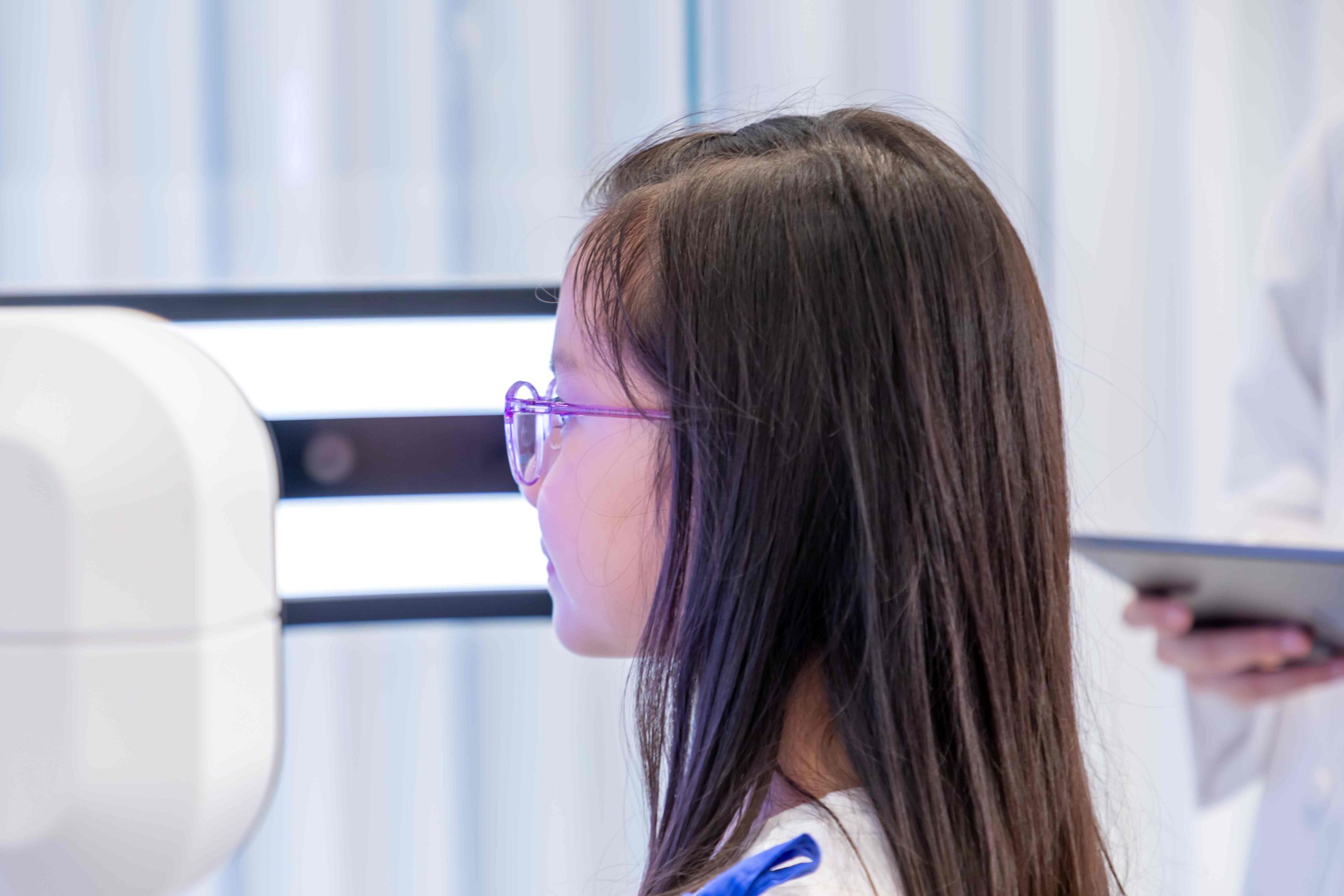 平時驗眼一般只驗到中間黃斑點度數,但其實視網膜周圍的離焦人人狀況不一。所以中心亦引入國際級多光譜屈光地形圖儀器(MRT),透過多光譜屈光地形圖儀器(MRT),可以驗到視網膜周邊度數,以及有效量度眼睛全區域離焦數據,從而評估小朋友近視風險及趨勢,同時可以驗配個人化控制近視眼鏡,以確保每一點都可做到最好的近視控制效果。